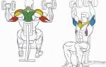 - Взять гантели в обе руки, по очереди тянуть их к груди.