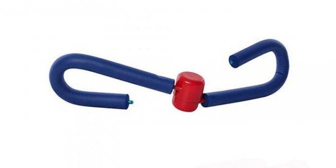 - Прорабатываем внутренние мышцы бедер. Сядьте на стул и зажмите рычаги тренажера так, чтобы его головка смотрела вниз. Беремся за рычаги руками для устойчивости, и сжимаем их силой ног. Это упражнение можно делать также на полу, лежа на боку. Повторяем 50 раз.