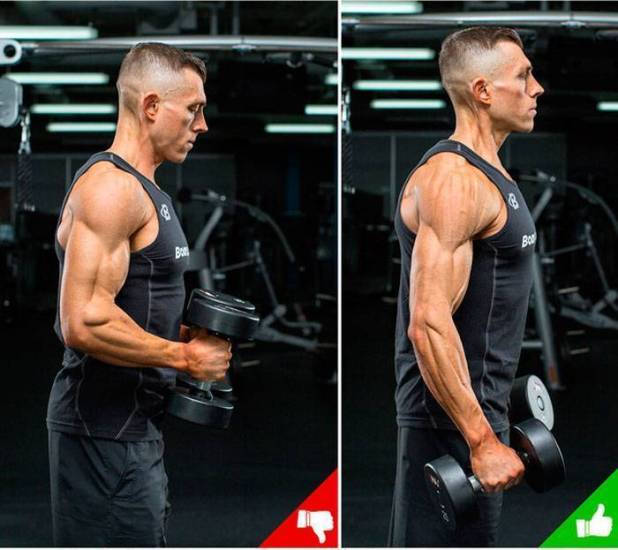 Гантели не должны двигаться по совсем прямой линии, но идти под дугой. Если упражнение делается не перед зеркалом, можно попросить напарника либо товарища по спортзалу проконтролировать правильность техники исполнения.