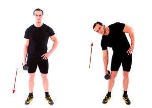 При боковых наклонах с гантелями задействованы в основном косые и боковые мышцы живота.