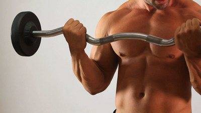 - № 3. Сгибают руки в положении стоя, используя прямую штангу или с из огнутым грифом, пауза – 3 секунды, повторений – 8, подходов – 2. Вес опускают после паузы, при этом можно почувствовать, как «горят» мышцы.