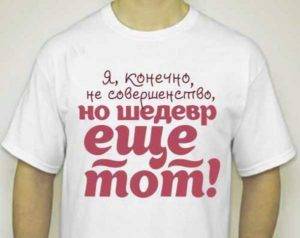 Простым, но весьма приятным и неожиданным подарком будет футболка с надписью. Здесь можно дать волю фантазии, и придумать какие-то классные надписи, но нам кажется в данном случае будет уместно «Я