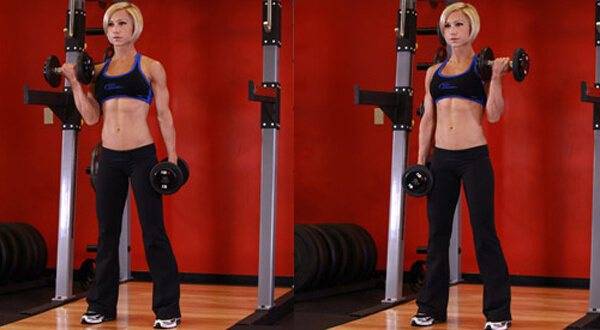 - Берем гантели по 10 кг и выполняем 10 повторений;