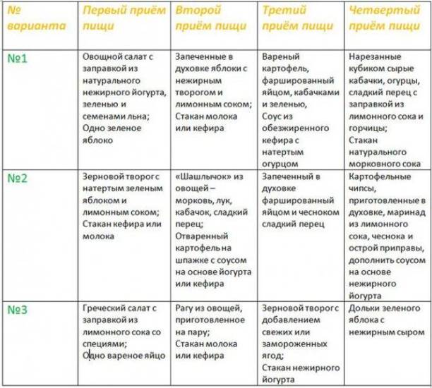 Диета Кима Протасова. Подробное меню на каждый день. Таблица