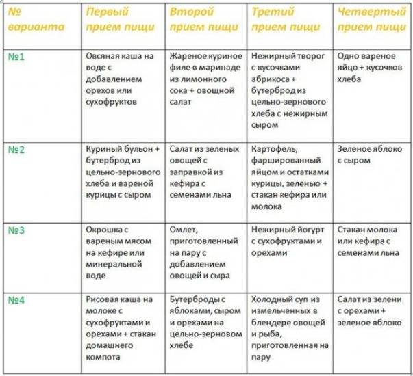 Примерное дневное меню диеты Протасова на этапе Выхода