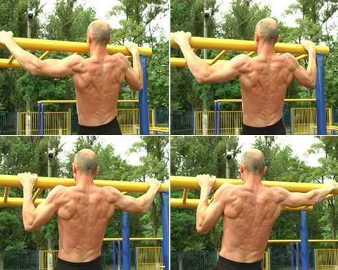 В этом хвате необходимо частичное подтягивание. Такие подтягивания предполагают не максимальное поднятие туловища, а до средней точки амплитуды.