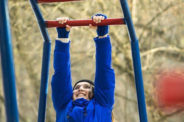 - Турник – снаряд общедоступный. Для занятий на нем необязательно записываться в спортивные залы. В большинстве дворов нашей родины они установлены прямо на площадках, где обычно играют дети. Да и прицепить такое устройство можно на любом дереве самостоятельно. Кроме всего, можно приобрести портативные модели, которые легко закрепить, к примеру, в дверном проеме.