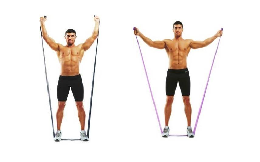 Упражнение с разведением рук в стороны выполняется довольно просто и направлено на развитие бицепсов, дельтовидных мышц и крыльев. Уровень натяжения ленты выбирайте в зависимости от своей физической подготовки.