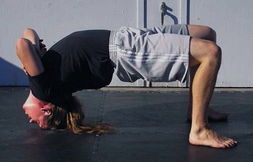 Если вы можете выполнить классический борцовский мост в течение нескольких минут без особых усилий, то вы, вероятно, готовы к следующему этапу. Цель состоит в том, чтобы оторвать руки от пола. В таком случае вес тела будет полностью на голове и шее. В качестве промежуточного шага вы можете приподняться на кончиках пальцев.