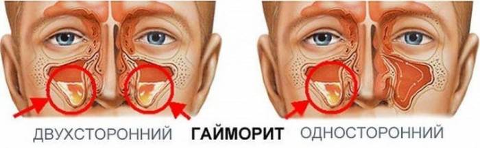 Если судить по месту локализации воспаления, гнойный гайморит бывает односторонним и двусторонним. При двустороннем гайморите воспалены обе пазухи, при одностороннем – либо правая, либо левая. Соответственно, и гайморит будет правосторонним или левосторонним.