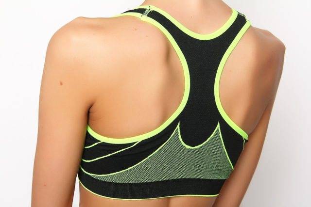 Если грудь у вас достаточно большая, очень важно при занятиях использовать специальный бюстгальтер. Это поможет поддерживать ее на одном уровне