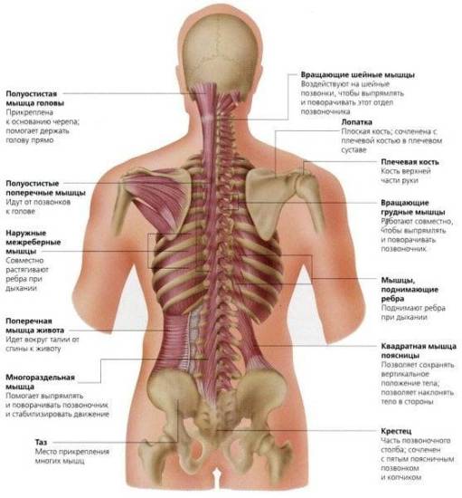 К лопатке со стороны спины присоединены основные мышцы ее и левой руки.