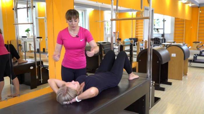 складка к ногам. Подняв ноги под прямым углом к туловищу, из положения лежа, необходимо стремиться соединить кончики пальцев рук и ног (повторы до 20 раз); обратные скручивания. Из положения лежа необходимо максимально перпендикулярно поднять ноги и держать их ровно, отрывая таз, осуществляются приподнимания бедер; ножницы. Поднятые ноги скрещиваются по 10-15 раз, поясница прижимается к полу и плечи должны быть максимально расправленными, можно усложнить задание, накинув на ноги эспандер; сложные скручивания. Упражнение проводится из положения сидя, ноги приподнимаются и вытягиваются вперед, руки раскидываются в стороны, после чего тело возвращается в исходное положение; поднятие корпуса
