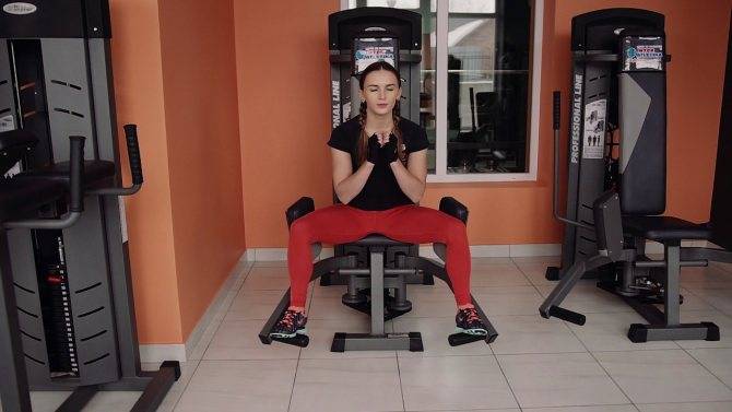 Механика выполнения схожа с вышеописанной, разница заключается в расположении веса, рассчитанного на большее укрепление квадрицепса: