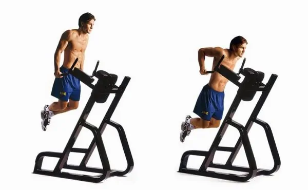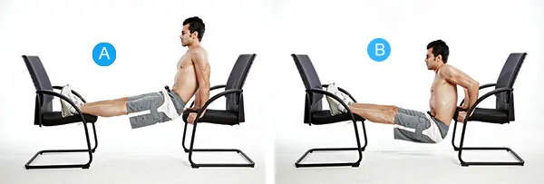 Подтягивание согнутых ног к груди. Для этого локтями нужно опереться на перекладины. Руки согнуты под прямым углом. Спину следует держать ровно. Корпус прямо висит вниз. Ноги сгибаются в коленях и подтягиваются к груди. Движения нужно выполнять плавно, чувствуя, как работают мышцы. Подход состоит из 8-10 подходов. Но все индивидуально. Необходимо сделать несколько подходов.