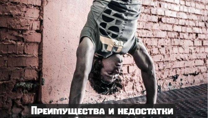- Отсутствует компрессионная нагрузка на позвоночник. В отличие от более распространённых жимов штанги или гантелей, для развития дельт. В вертикальных отжиманиях, отсутствует давящая нагрузка на позвоночник. Что делает упражнение менее травма опасным.