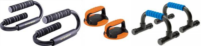 Подставки для отжиманий (упоры для отжиманий) представляют собой небольшие приспособления, используемые для облегчения или наоборот, — утяжеления выполнения различных отжиманий от пола. Они бывают разной конструкции от простых «стационарных» до поворотных, перекатывающихся и других. Облегчить тренировку они могут тем, что увеличивают угол вашего тела относительно горизонта и, соответственно, уменьшают этим нагрузку на руки, если вы делаете упражнения с собственным весом. Также такие упоры полезны, если у вас слабые или недостаточно гибкие кисти рук. Усложнение тренировки с помощью упоров для отжиманий достигается тем, что они позволяют добиться большей амплитуды (опускаться глубже относительно кистей рук). Также с их помощью можно прорабатывать руки и грудь, меняя углы упора кистей и пр.
