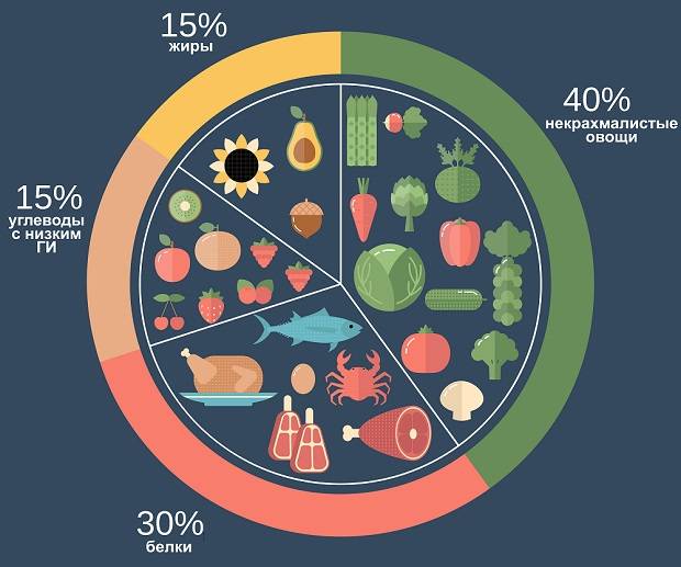 Независимо от индивидуальных особенностей, принципы питания должны сохраняться в соотношениях БЖУ:30-10-60%.