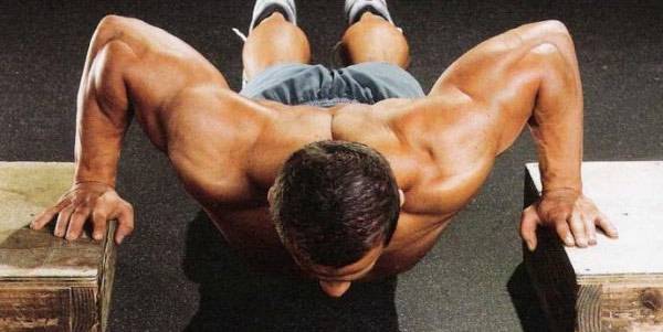 Чтобы увеличить нагрузку на срединных участках грудной мышцы, можно использовать два табурета. Их ставят по обе стороны от себя примерно на ширину плеч. При этом стоит учесть, что ноги должны располагаться на другом возвышении. Отжимания выполняют таким образом, чтобы корпус максимально находился в статическом положении при опускании вниз. Желательно выполнить 3-4 подхода по 10-15 раз. Между ними делают перерыв 2-3 минуты. Рельефный торс от таких тренировок обеспечен.