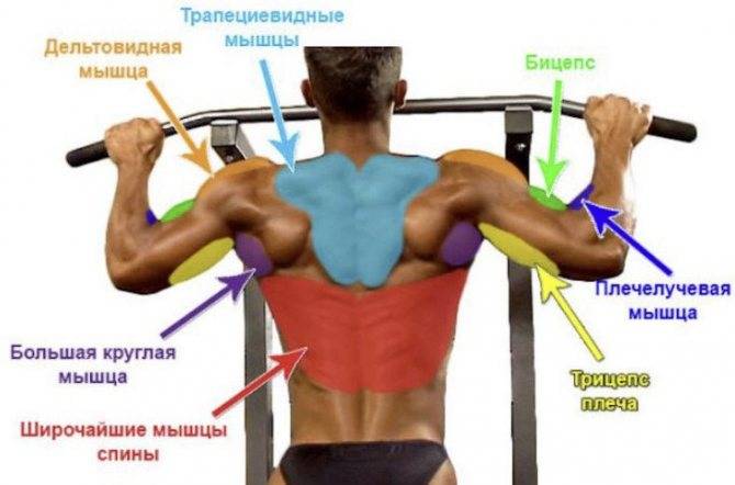Во время подтягиваний на высокой перекладине работает сразу несколько крупных мышечных групп: