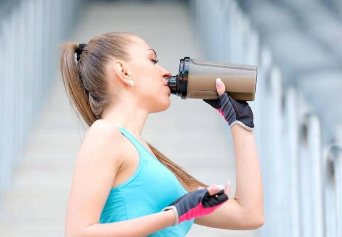 - выпейте протеиновый коктейль через полчаса после упражнений,