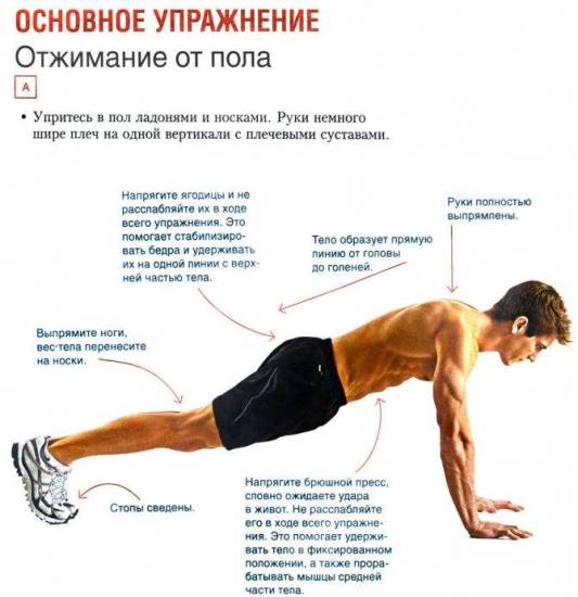 // Каждое из упражнений программы отжиманий выполняется в 3-4 подхода по 12-15 повторений в медленном ритме: