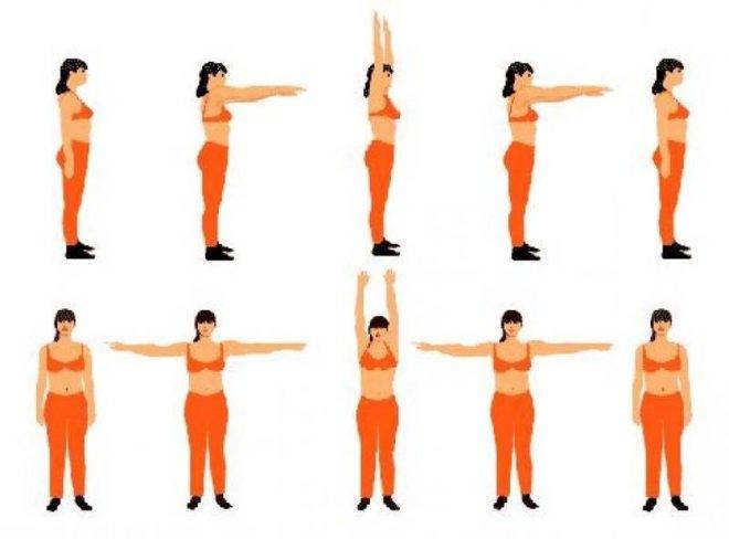 Все упражнения должны быть не сложными, выполняться легко, не перегружая, а лишь разрабатывая каждые в отдельности участки тела.