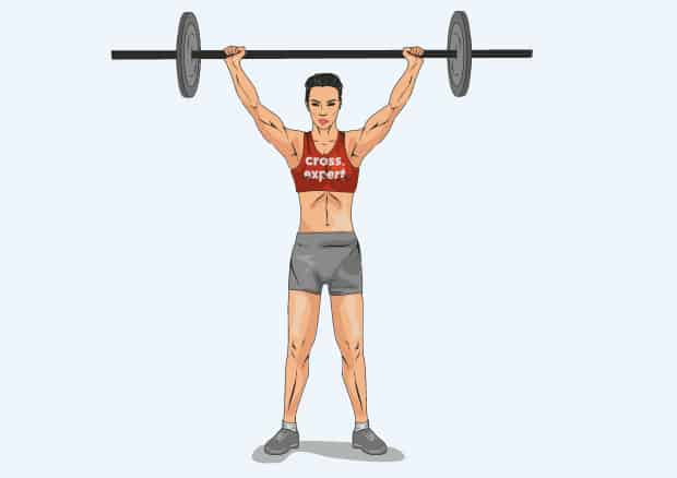 Выталкивание штанги осуществляется в первую очередь за счет усилия квадрицепса и ягодиц, дельты и трицепсы при этом отвечают за стабилизацию снаряда. Не путайте толчок со швунгом или армейским жимом, здесь мы не качаем плечи, мы нарушаем законы физики.