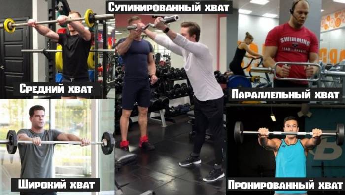 Подъемы перед собой не являются технически сложным упражнением. Поэтому их с легкостью освоят атлеты любого уровня подготовки. Но прежде чем приступить к выполнению, нужно определиться с хватом. Существует 5 основных разновидностей:
