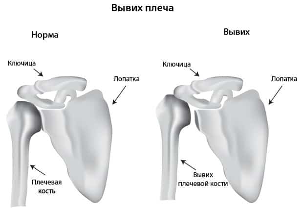 Это смещение головки кости плеча, которое приводит к утрате контакта с ложем лопатки и полной потере работоспособности сустава.