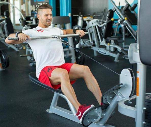 Это базовый вариант фронтальной тяги, который считается полностью универсальным. Хочу заметить, что выполнение движения в низком блоке кроссовера не считается заменой. При такой технике трос будет двигаться не горизонтально, а снизу-вверх. Как следствие – меняется угол нагрузки и в работу будут включаться другие мышцы. Если же садиться на пол, а не на скамью, то делать упражнение будет неудобно. Такой вариант подойдет только при отсутствии специального тренажера (хотя я не встречал зала, где его не установили).