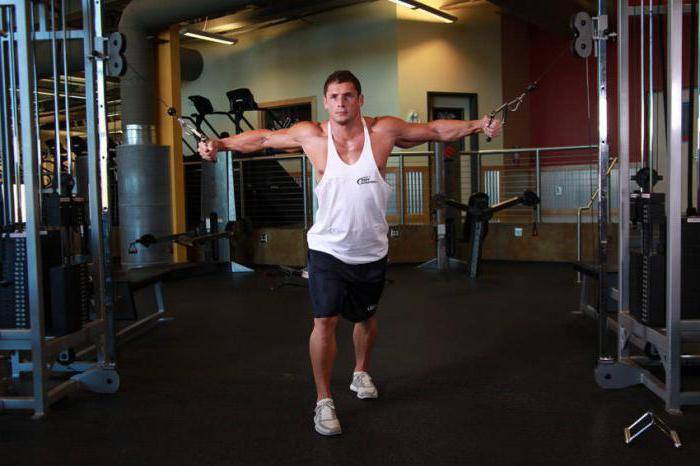 Тяга с нижнего блока для дельтовидных мышц стоя