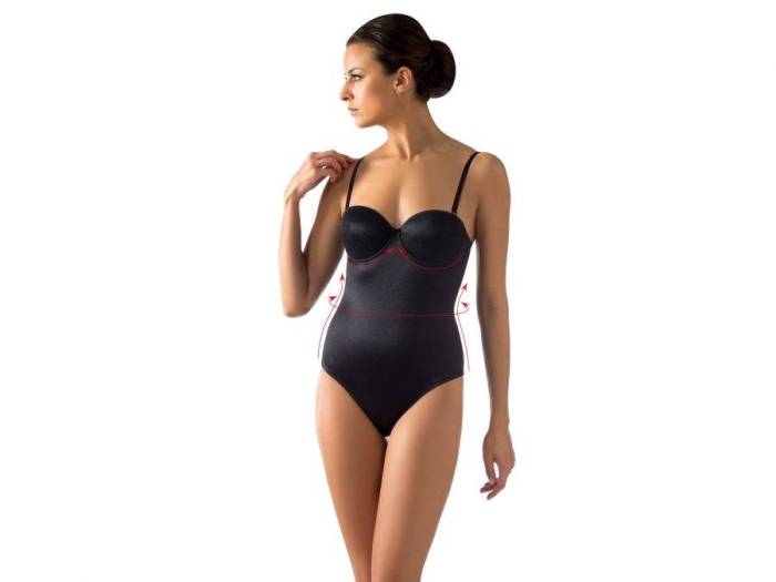 - Сильная коррекция. Предназначено данное белье сильно полным девушкам. Идет на утягивание живота, боков, бедер, ягодиц и заключен в форму боди. Как правило, такие модели не очень комфортны в носке и требуют долгого привыкания к изделию.
