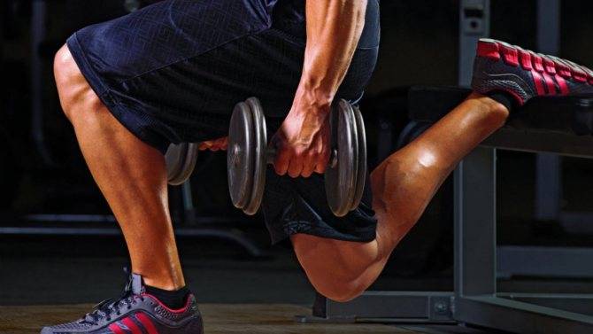 Например, любые варианты выпадов или приседаний с гантелями в руках.