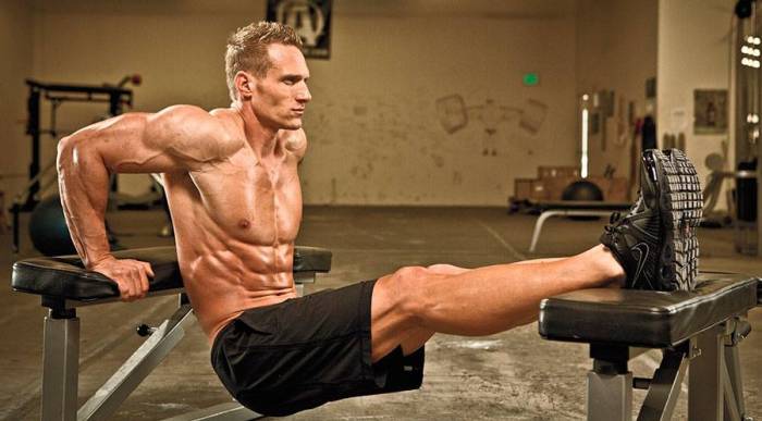 У обратных отжиманий достаточно много вариаций. Новички могут выполнять их, поставив на пол согнутые ноги, а продвинутые спортсмены – закидывать ноги на другую скамью и применять отягощение.