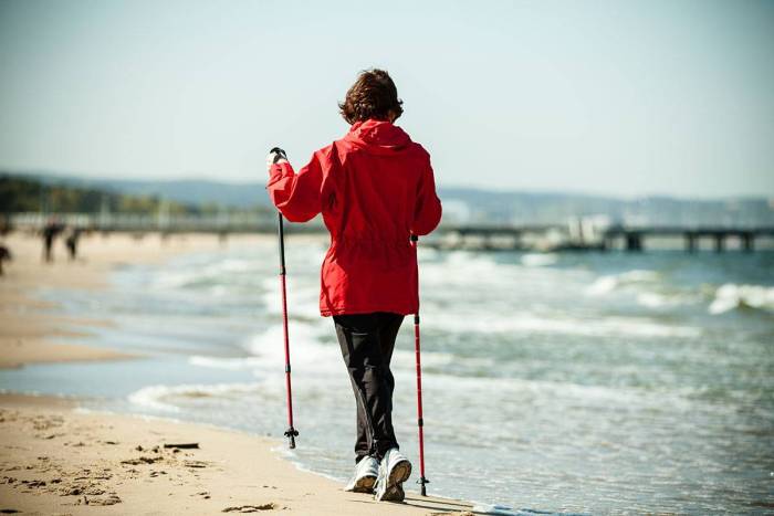 Улучшенная версия прогулки. В этом спорте используются специальные палки — они помогают распределить нагрузку по всему телу.