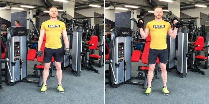 Если вы хотите как следует прокачать бицепсы рук и сделать их размеры внушительными, то сгибание рук с гантелями подойдет как нельзя кстати. Есть различные вариации упражнения: с разворотом гантелей вверху, когда нагрузка идет на наружную головку бицепса; пронированным хватом (работает плечевая мышца) и другие. В статье разберем 3 основных варианта сгибаний рук с гантелями стоя. Начнем по-порядку.