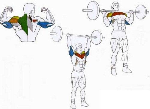 Жим штанги стоя это многосуставное, комплексное упражнение, которое отлично нагружает такие мышцы как дельтовидные, трицепс, грудные.