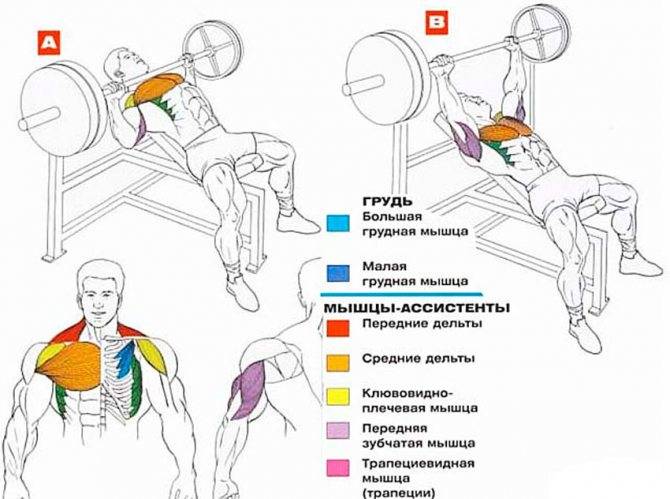 Какие мышцы работают при жиме штанги на наклонной скамье вверх головой