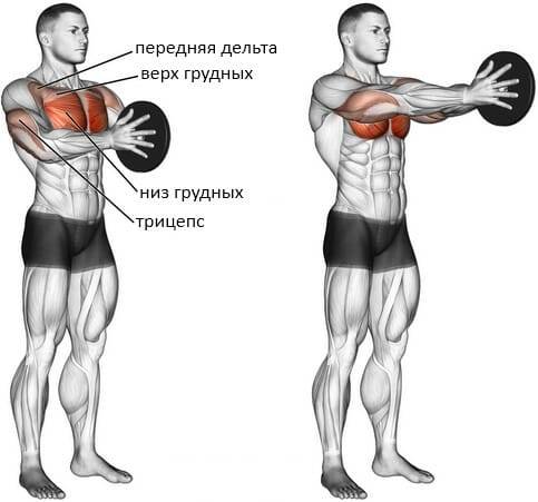 Правда характер нагрузки в указанных упражнениях все же иной, хотя целевые мышцы в них задействованы одни и те же. В силу того, что в жимах Свенда снаряды прижаты друг к другу, грудные нагружаются еще и изометрически – в этом заключена уникальность данного упражнения.